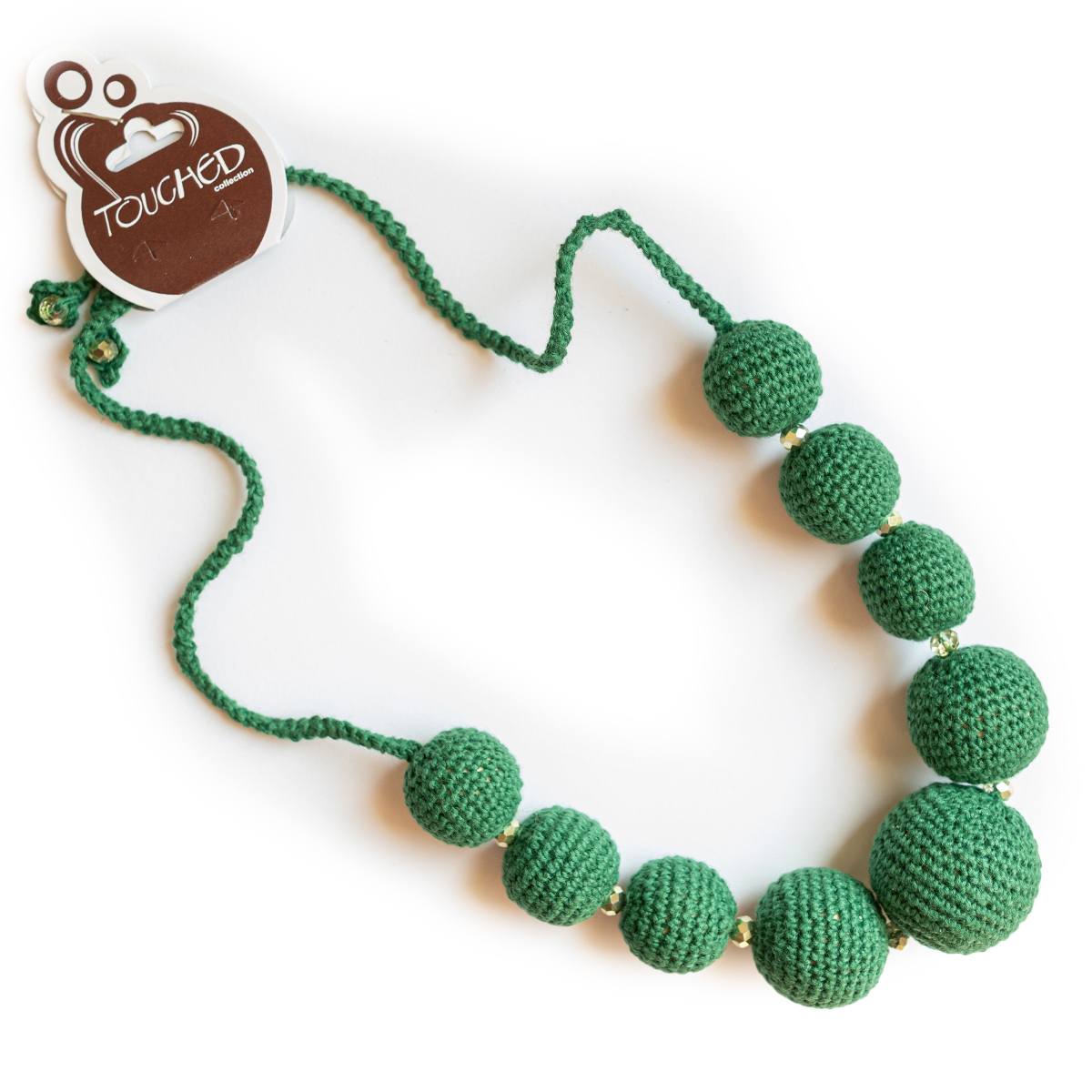 Colier crosetat, lucrat manual, in nuante de verde..Se pot personaliza pe mai multe nuante.